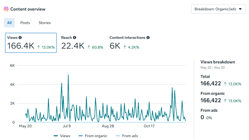 • Grew the account organically from 0 to over 1,300 followers without spending a single dollar on paid advertising