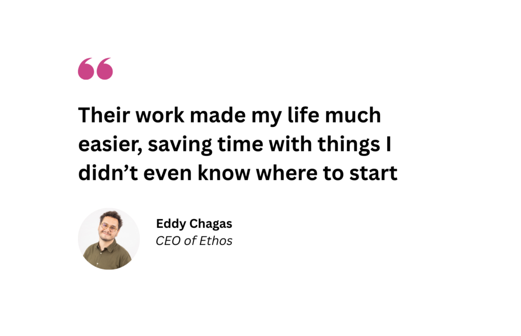 Ethos is no longer limited by founder led growth. The company brand now stands on its own, making it possible to scale client acquisition, operations, and team involvement sustainably.